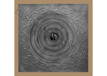 Чугунная плита под казан. Диаметр отверстия в плите - 515 мм (подходит для отечественного казана емкостью 25 л). Плита укомплектована набором колец, позволяющих использовать ее для основной номенклатуры представленных на отечественном рынке казанов: емкостью 20, 12 (отечественный и узбекский), 8, 6, 4 л. Плита декорирована рельефным выпуклым рисунком в восточном стиле. Высота рисунка - 5 мм. С обратной стороны плита снабжена ребрами жесткости. None