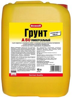 - ДЕКОСЕЛФ грунтовка универсальная (10л) DECOSELF А50 грунт универсальный (10л) по выгодной цене 481 р. руб.;