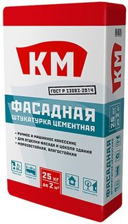 - КМ штукатурка цементная фасадная (25кг) KM штукатурка фасадная цементная (25кг) по выгодной цене 172 р. руб.;