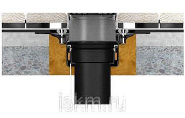 Схема применения опор для плитки на эксплуатируемой кровле совместно <a href="https://iskm.ru/p2609787-krovelnaya-vodostochnaya-vo
