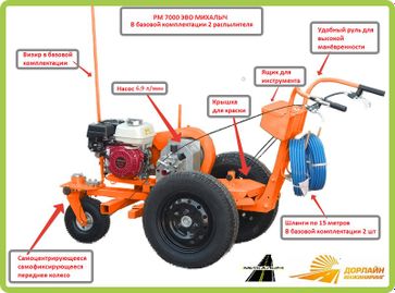 - Разметочная машина РМ-7000 ЭВО Михалыч с приводной тележкой LineDriver по выгодной цене 885 000 р. руб.;