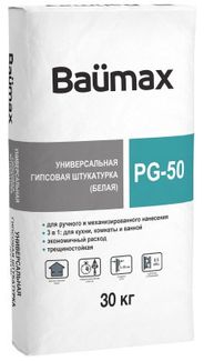 - БАУМАКС штукатурка гипсовая универсальная белая (30кг) Штукатурка гипсовая ручного и машинного нанесения белая (30кг) по выгодной цене 244 р. руб.;