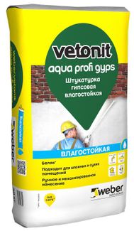 - ВЕБЕР.ВЕТОНИТ Аква Профи Гипс штукатурка гипсовая влагостойкая (30кг) WEBER.VETONIT Aqua Profi Gyps штукатурка гипсовая влагостойкая (30кг) белая по выгодной цене 436 р. руб.;