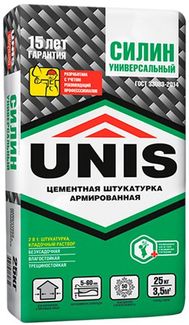- ЮНИС Силин Универсальный штукатурка цементная армированная (25кг) UNIS Силин Универсальный штукатурка цементная армированная (25кг) по выгодной цене 239 р. руб.;