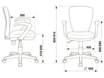 Характеристики: <br> Материал крестовины: пластик.<br> Диаметр крестовины: 560 мм.<br> Материал подлокотников: пластик.<br> Материал колес: пластик.<br> Диаметр колес: 50 мм.<br> Механизм регулировки высоты: газлифт.<br> Механизм качания: пружинно-винтовой без фиксации.<br> Регулируемая высота сиденья: 410-500 мм.<br> Габариты сиденья (ШхГ): 450 х 395 мм.<br> Максимальная нагрузка: 100 кг.<br> None Страна производства: Россия