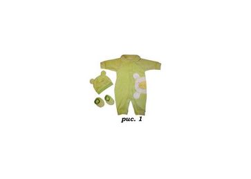 Комплект "Медвежонок" Замечательный, велюровый комплект для новорожденных. Комплект "Медвежонок" Комбинезончик с открытыми ножками, полностью застегивается на кнопочки, украшен вышивкой-аппликацией. Шапочка с ушками. Пинетки на мягкой трикотажной манжете. Производство: "Бэмби", Украина Комплект "Медвежонок" None