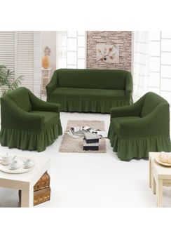 Комплекты чехлов: Комплект чехлов JUANNA для мягкой мебели, 3 предмета (3+1+1) цвет оливковый