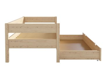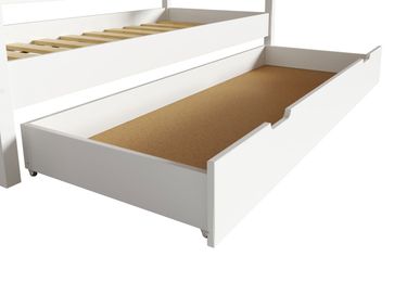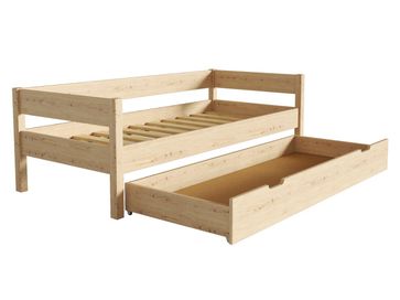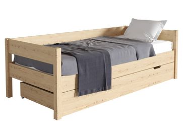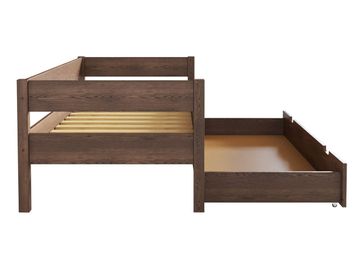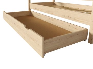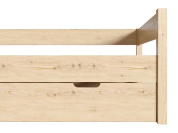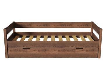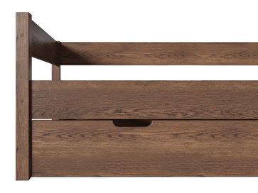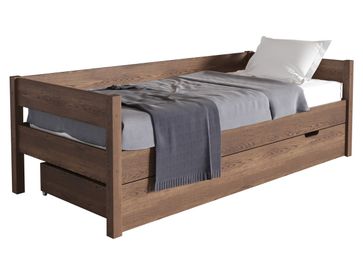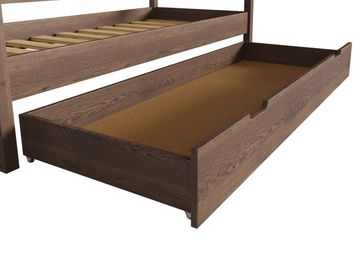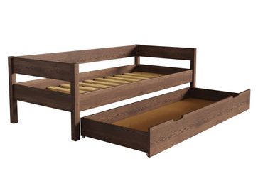 Характеристики: <br> Материал каркаса: массив сосны.<br> Высота спального места от пола: 290 мм.<br> Рекомендуемая высота матраса: 100 мм.<br> Максимальная нагрузка на спальное место: 150 кг.<br> Выкатной ящик на колесных опорах.<br> Ящик выдвигается за выемки на фасаде.<br>