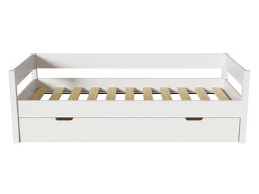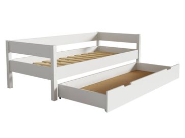 Детская кровать Алекса — удобная и экологичная модель для обустройства комнаты мальчика или девочки. Благодаря простому и лаконичному дизайну кровать отлично подходит к любому интерьеру. Выкатной ящик для хранения постельных принадлежностей или игрушек поможет сэкономить пространство.<br>