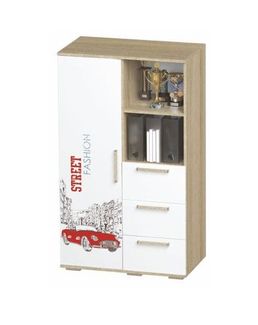 Многофункциональный детский шкаф Сенди станет удобным элементом в любой детской. На открытых полочках можно разместить игрушки, книги или награды ребенка. За распашной дверкой находится небольшая штанга для плечиков. В выдвижных ящиках можно расположить школьные принадлежности или личные вещи.<br> Преимущества: <br> комбинированный — зона хранения подойдет для самых разных предметов, предусмотрены открытые ниши, закрытые отделения и выдвижные ящики;<br> стильный — яркие фасады модели выступают в роли акцентирующего элемента, создавая уютную обстановку в комнате;<br> модульная серия — шкаф можно использовать как самостоятельный элемент, так и комбинировать его с другими моделями серии Сенди.<br><br> Модель выполнена из ЛДСП. В ящиках установлены роликовые направляющие. Дверки оснащены четырехшарнирными петлями и удобными ручками из бронзового пластика с мозаичным покрытием.<br> Обратите внимание! Боковины ящиков закромлены только с одной стороны, сборку необходимо осуществлять строго по инструкции. None Страна производства: Россия