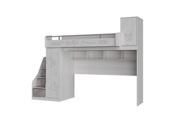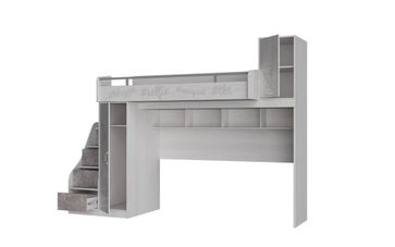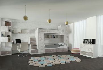Комплект детской мебели Селфи — отличный выбор для оформления детской или молодежной комнаты. Модный стиль исполнения изделий сможет понравиться как мальчикам, так и девочкам. Композиция предполагает два спальных места.<br> Преимущества:<br> <br> модульная серия — изделие представлено в модной коллекции для оформления детской комнаты, благодаря чему вы сможете создать гармоничную обстановку;<br> функциональная лестница — конструкция оснащена множеством выдвижных ящиков, которые идеально подойдут для хранения белья и игрушек;<br> большие спальные места — кровати отлично подойдут как детям, так и подросткам;<br> практичный бортик — установлен на кровати-чердаке, поможет обеспечить должный уровень безопасности вашего ребенка во время сна;<br> удобное хранение — внутреннее наполнение модулей подразумевает и открытые ниши, и выдвижные ящики, и отделения с распашными дверками.<br><br> В комплект входят (ВхШхГ):<br> <br> комбинированный стеллаж: 2203 х 590 х 435 мм;<br> настенная полка: 296 х 1140 х 218 мм;<br> письменный стол: 741 х 1140 х 590 мм;<br> кровать-чердак: 2203 х 2988 х 886;<br> одноярусная кровать: 650 х 2040 х 839 мм;<br> стеллаж: 2203 х 472 х 434 мм;<br> шкаф для белья: 2203 х 472 х 434 мм;<br> комод: 741 х 910 х 435 мм.<br><br> Ориентация кровати-чердака универсальна, стороны расположения элементов определяются при сборке.<br> Для изготовления изделий используется ЛДСП толщиной 16 мм. Ручки произведены из металла. В ящиках кроватей установлены роликовые направляющие, в ящиках остальных изделий установлены шариковые направляющие.<br>