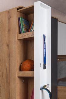 Детский шкаф Лойс придется по вкусу активному и творческому ребенку. Модель состоит из внутренней закрытой зоны и фасадной части с карманами. Полки с ограничителями, ниши с крючками и карман для высоких предметов позволят без труда разместить тренировочную форму, мячи, наборы для хобби, ватманы и другие аксессуары.<br>
