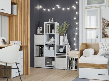 Стеллаж Лайт — прекрасный вариант для организации хранения книг и игрушек. Нижние секции позволят ребенку самостоятельно брать и убирать на место свои вещи, а верхние — держать особо ценные экземпляры вне доступа малыша. Контрастные вставки могут быть размещены в любой секции или убраны вовсе.<br>