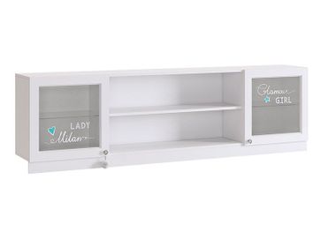 Преимущества: <br> модульная серия – изделия входит в очаровательную коллекцию детской мебели «Гламур», которая поможет оформить стильную и практичную обстановку в комнате вашего ребенка;<br> стильное исполнение – фасады с авторским рисунком декорированы глиттерным лаком, ручки-стразы дополнены меховыми подвесками, а стеклянные элементы инкрустированы кристаллами Swarovski;<br> высокое качество – все края моделей аккуратно обработаны кромкой ПВХ, в ящиках используются надежные шариковые направляющие.<br>