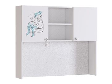 Для изготовления изделий используются ЛДСП, глянцевая МДФ и стекло. Надстройка дополнена пробковой доской для заметок. Кровать укомплектована основанием настил и подушками. Внутри двухстворчатого шкафа расположены секция полок и штанга. None Страна производства: Россия