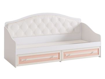 Детская кровать Алиса станет не только нежным украшением комнаты малышки, но также местом отдыха и игр. Сидение и спинка продублированы мягкой обивкой. Снизу кровать оборудована ящиками для хранения белья и аксессуаров.<br>