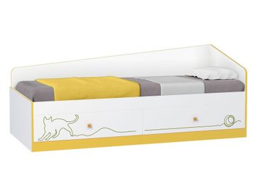 Детская кровать Альфа прекрасно впишется в интерьер. Выдвижные ящики позволяют рационально использовать пространство для хранения постельных принадлежностей, игрушек или других вещей. Изображение играющего котенка создает уютную и непринужденную атмосферу.<br>