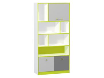 Стеллаж в детскую Альфа с ассиметричными полками — практичный и функциональный вариант обустройства комнаты. Трехцветный модуль притягивает взгляд в любом интерьере. Сочетание открытых и закрытых секций разного размера позволяет оптимально расположить все необходимые предметы.<br>