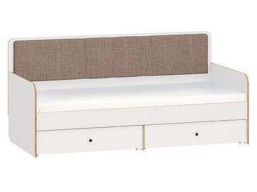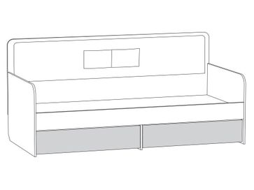 Характеристики: <br> Размер спального места (ШхГ): 900 х 2000 мм.<br> Материал корпусов и фасадов: ЛДСП 16 мм.<br> Материал обивки спинки кровати: рогожка.<br> Материал ручек: пластик.<br> Тип направляющих: шариковые.<br> Тип штанги: продольная.<br> Максимальная нагрузка на спальное место: 90 кг.<br> Высота спального места от пола: 400 мм.<br> Рекомендуемая высота матраса: 160 мм.<br> Механизм открывания ящиков: выкатной на колесных опорах.<br> Ориентация сборки письменного стола: универсальная.<br> Дверца стеллажа навешивается на любую сторону.<br>