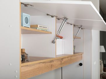 Комплект детской мебели Вуди создаст функциональную обстановку даже в небольшом помещении. Кровать легко превращается из комфортного спального места в полноценную рабочую зону. Благодаря столешнице с постоянным горизонтом не нужно убирать вещи при трансформации. Для хранения личных вещей предусмотрены вместительный комод с тремя выдвижными ящиками и стеллаж.<br>