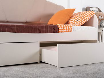 Детская кровать Шелл организует удобное и функциональное спальное место даже в небольшой комнате. Благодаря мягкой спинке увеличенной толщины днем модель можно использовать в качестве полноценного дивана. Вместительные выкатные ящики упорядочат хранение постельных принадлежностей. Благодаря скругленным углам и отсутствию лицевой фурнитуры ребенок максимально защищен от травм и ушибов.<br>