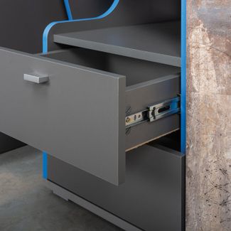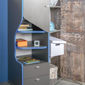Функциональный детский шкаф Индиго поможет навести порядок в комнате подростка. Пара выдвижных ящиков, продольная штанга для плечиков и множество различных полочек подойдут для хранения всех необходимых вещей.<br>