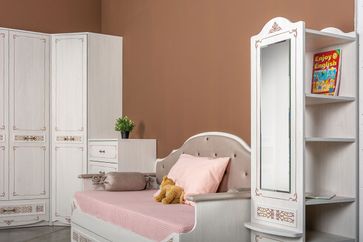 Детский угловой шкаф Флоренция станет незаменимым помощником в организации удобной системы хранения вещей. Модель делится на несколько функциональных зон, в левой части расположен ряд полочек для хранения повседневных вещей, напротив — предусмотрена продольная штанга для размещения платьев, брюк или верхней одежды. Верхнее отделение послужит местом для хранения сезонных принадлежностей.<br>