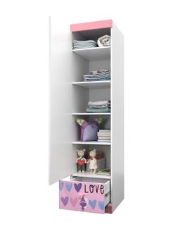 Шкаф-пенал Тролли организует в детской комнате компактную, но очень практичную систему хранения. Здесь найдется место для белья, игрушек, книг и учебников, а также всевозможных мелочей.<br> Преимущества: <br> функциональное внутреннее наполнение — за распашной дверью расположилась секция с полками, внизу находится выдвижной ящик;<br> шариковые направляющие — плавное и бесшумное выдвижение ящика;<br> миниатюрная ручка оригинальной формы — визуально не утяжеляет образ и украшает интерьер;<br> яркий дизайн — на фасаде изображен забавный мультипликационный герой. Он поднимет ребенку настроение и превратит комнату в страну фантазий.<br>