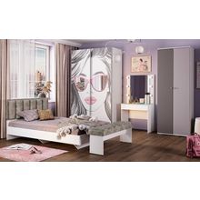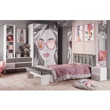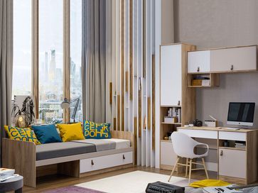 В комплект входят (ВхШхГ): <br> Кровать: 618 х 2032 х 838 мм.<br> Письменный стол: 750 х 1200 х 590 мм.<br> Навесной шкаф: 602 х 1200 х 280 мм.<br> Стеллаж: 2127 х 468 х 438 мм.<br>