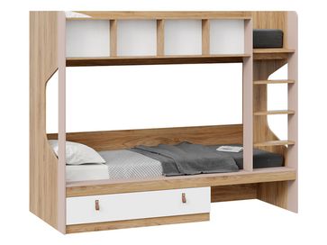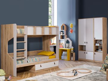 Комплект детской мебели Марвин идеально подойдет для семьи с двумя детьми. Современный дизайн в мягких тонах поможет в создании современного интерьера. Двухъярусная кровать обеспечит места для комфортного отдыха и сна, а высокий бортик предотвратит падение ребенка с верхнего яруса. Шкаф и стеллаж с комбинированным наполнением расширят систему хранения.<br>