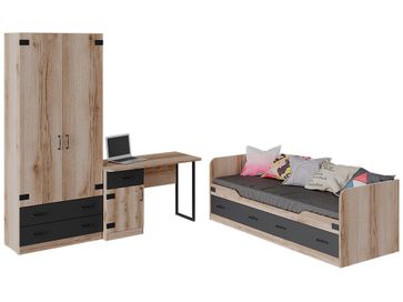 Комплект детской мебели Окланд включает в себя всё необходимое для обустройства комнаты ребенка или подростка. Функциональная кровать с двумя выдвижными ящиками поможет создать уютную зону для сна и отдыха. Система хранения представлена вместительным распашным шкафом. Для организации рабочего места предусмотрен письменный стол с тумбой и ящиком для размещения школьных принадлежностей.<br>
