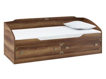 Уютная детская кровать Навигатор – стильный вариант для меблировки детской или подростковой комнаты. В основании располагаются два выдвижных ящика для постельных принадлежностей. Спинка и ящики дополнены стилизованными металлическими уголками и ручками в бронзовом цвете.<br>