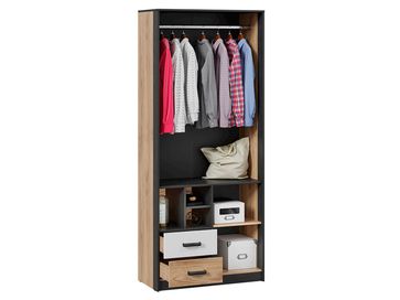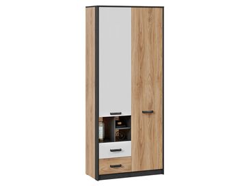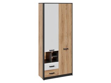 Детский шкаф Рико с комбинированным наполнением позволит разместить внушительное количество вещей, не загромождая жилое пространство. Система хранения включает отделение за распашными дверцами со штангой для плечиков и полками для обуви, два выдвижных ящика и открытыми нишами для украшения комнаты аксессуарами.<br>