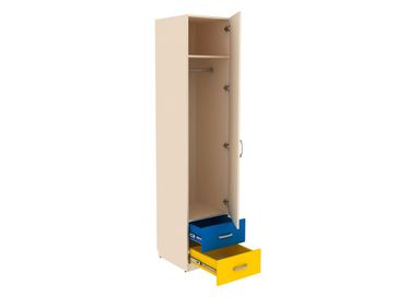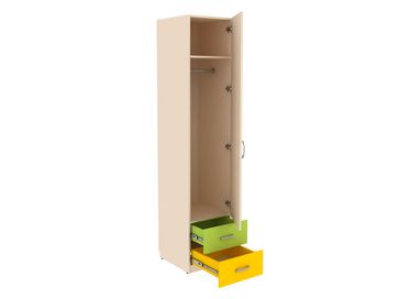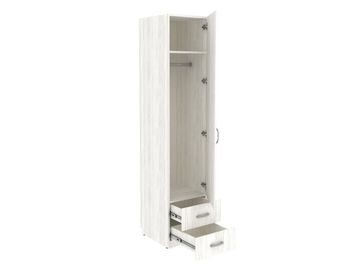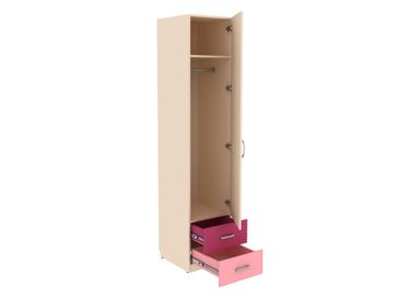 Преимущества: <br> функциональная конструкция — отделение с продольной штангой и антресольной полкой за распашной дверцей, два выдвижных ящика;<br> ЛДСП класса Е1 — экологичный материал, безопасен для детей;<br> регулируемые опоры — позволяют компенсировать неровности напольного покрытия;<br> шариковые направляющие — плавное и бесшумное выдвижение ящиков.<br>