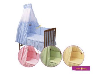 Ткань 100% хлопок;Наполнитель холлофайбер;Подлежит машинной стирке;Подходит для кроваток 120х60.В комплект входит:Балдахин 150х450 см;Бортик защитный 360х45 см;Одеяло 110х140 см;Подушка 40х60 см;Простынь 100х150 см;Наволочка 40x60 см;Пододеяльник 110х140 см. None