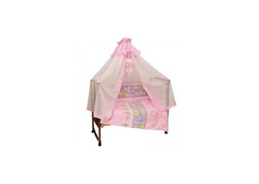 Ткань 100% хлопок-Наполнитель холлофайбер-Подлежит машинной стирке-Подходит для кроваток 120х60 и 125х65.В комплект входит:Балдахин 150х450 см-Бортик защитный 360х40 см-Одеяло 110х140 см-Подушка 40х60 см-Простынь 100х150 см-Наволочка 40x60 см-Пододеяльник 110х140 см. None