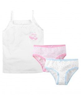 Комплект для девочки Bossa Nova, состоящий из маечки и двух трусиков, изготовлен из натурального хлопка. Приятный на ощупь, мягкий, эластичный, комплект не натирает в области швов и позволяет коже ребенка дышать. Майка на узких бретелях из ажурной резинки оформлена разноцветным принтом, украшена бантиком. Трусики имеют мягкую, эластичную резинку, которая не оставляет следов на коже и не стягивает животик ребенка. Комплект будет прекрасным дополнением гардероба вашей девочки Минимальная сумма заказа 1500 руб. Возможен самовывоз. Есть доставка.