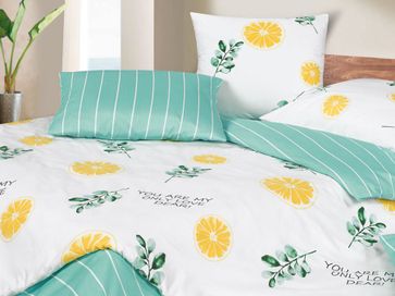 Эффектный комплект постельного белья Оранж создаст оригинальную и красочную атмосферу в спальне благодаря взрывному миксу контрастных цветов. Сочетание двух тканей позволяет легко чередовать строгую полоску с растительно-цитрусовыми мотивами. Комплект практически не мнется и не выцветает.<br>