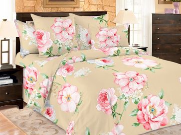 Комплект постельного белья Адор поможет создать в спальне весеннее настроение в любое время года. Нежный бежевый оттенок дополнен красочным цветочным принтом.<br>