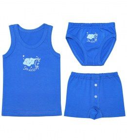 Комплект для мальчика Веселый малыш Set Подводный мир в своем составе имеет майку, трусы и шорты. Все изделия изготовлены из неплотной хлопковой ткани, прекрасно пропускающей воздух и хорошо впитывающей влагу. Минимальная сумма заказа 1500 руб. Возможен самовывоз. Есть доставка.