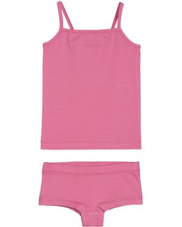 Комплект нижнего белья Ёмаё розовый - комфортный и практичный хлопковый набор на каждый день для девочки, который состоит из майки на бретельках и трусиков в виде шорт. Минимальная сумма заказа 1500 руб. Возможен самовывоз. Есть доставка.