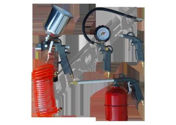 Набор к компрессору: пистолет-распылитель с наливным стаканом, пистолет-разбрызгиватель со стаканом пониженного давления, шинный манометр, продувочный пистолет, спиральный шланг с присоединительной быстрозажимной муфтой (5 м)