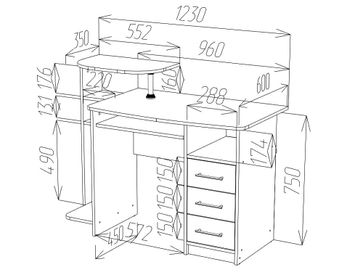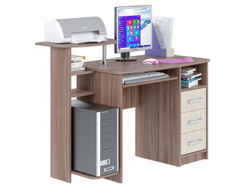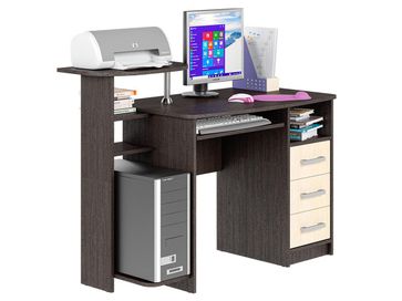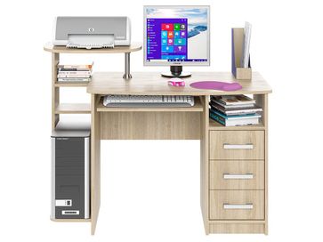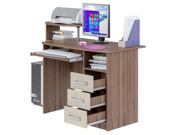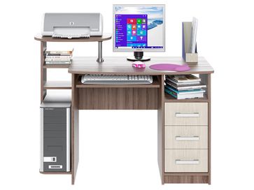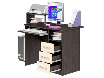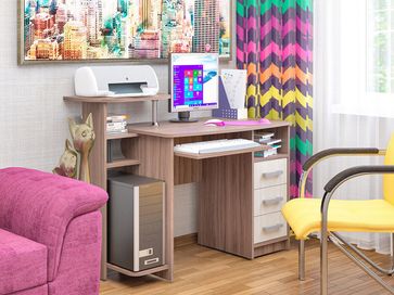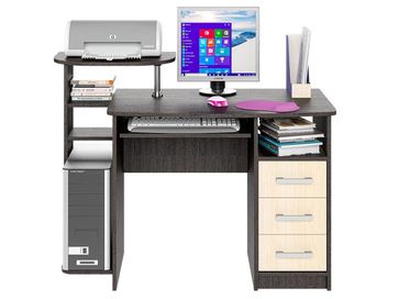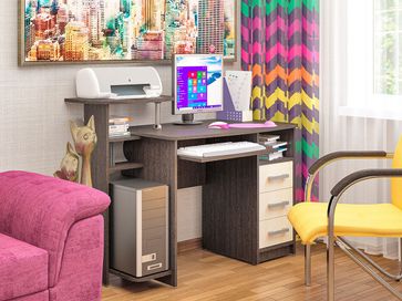 Компьютерный стол Фалькон организует удобное место для учебы или работы. Модель с несколькими открытыми полками, выдвижными ящиками и нишей для системного блока позволит грамотно разместить все необходимые под рукой принадлежности и с легкостью поддерживать порядок на столешнице.<br>