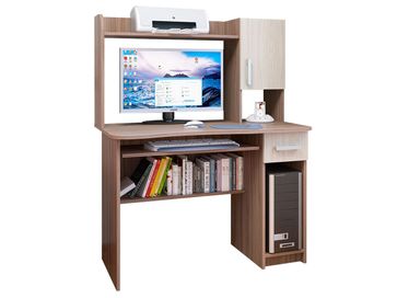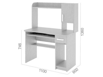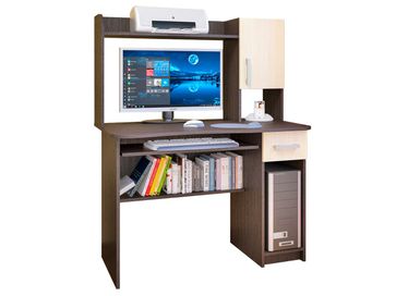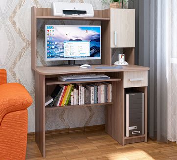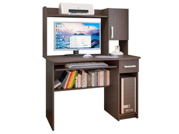 Компьютерный стол Скопин — практичное и функциональное решение для современного интерьера квартиры или офиса. Книги, папки с бумагами, оргтехнику и письменные принадлежности легко уместить на открытых полках и в ящиках, а в просторной нише найдется место для широкоформатного монитора.<br>