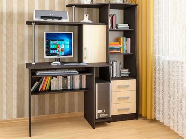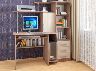 Компьютерный стол Патио — это не только удобная столешница с полками для клавиатуры, папок и оргтехники, но и полноценная система хранения. Правая сторона модели оснащена вместительными нишами и ящиками, в которых найдется место для книг и любых рабочих или учебных принадлежностей.<br>