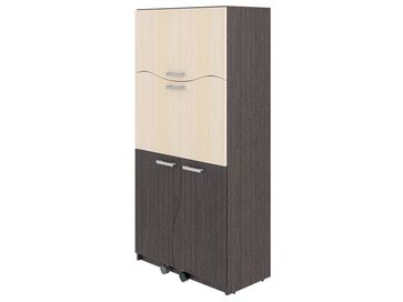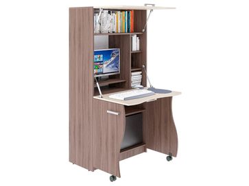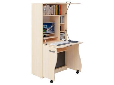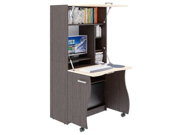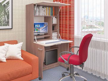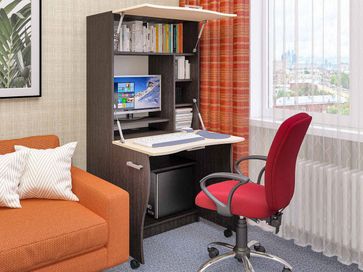 Компьютерный стол Уник — это продуманная до мелочей конструкция. Внешне модель напоминает обычный шкаф и легко превращается в полноценное рабочее место. Нижние дверцы на колесиках служат опорой для столешницы, в которую трансформируется центральная створка, а верхний фасад открывает доступ к нише для оргтехники и книг.<br>