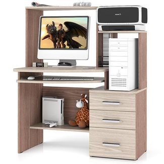 Стол компьютерный С-МД-СК3-NEW. Цвет - ясень шимо светлый/ясень шимо тёмный. Материал - ламинированная ДСП. Размер (ШхГхВ) 105х65х135 см. Размер ниши для монитора (ШхГхВ) 60х65х53 см. Стильный и удобный стол с надстройкой, выкатной панелью для клавиатуры и тумбой с тремя выдвижными ящиками станет для Вас желанным местом работы! Универсальная сборка. None Есть доставка.