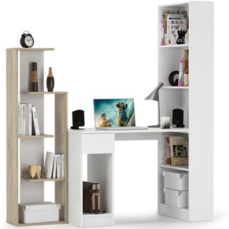 Стол компьютерный Лайт и стеллаж Касп. Цвет - белый/дуб крафт серый. Размер (ШхГхВ) 159х58х179 см. Универсальный набор мебели составит комфортное рабочее место для дома и офиса. Данная комплектация представляет собой сочетание удобного стола и открытого стеллажа. Такой тандем составляет удобное рабочее место, занимая минимум места, предоставляет максимум функционального наполнения. None Есть доставка.