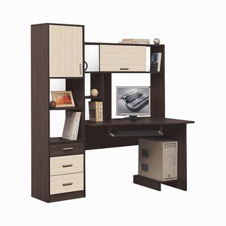 Оригинальный компьютерный стол ПСК-10 - отличный образец качественной и недорогой корпусной мебели, которая подходит для любого современного интерьера. Он привлекает своей функциональностью, строгим дизайном и высоким уровнем прочности.Слева располагается небольшой шкаф-пенал с закрытой нишей, полкой и тремя выдвижными ящичками для мелочей. Справа имеется отдел для системного блока. Над столешницей предусмотрена надстройка с полками, местом для монитора и нишей с откидной дверцей.Фасады двух нижних ящиков и створки создают контраст с элементами тёмного цвета, поэтому изделие смотрится максимально привлекательно. Работаем круглосуточно!Возврат 21 день. Страна производства: Россия Есть доставка.