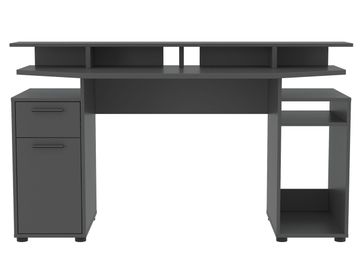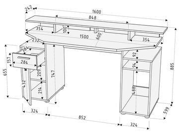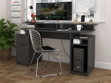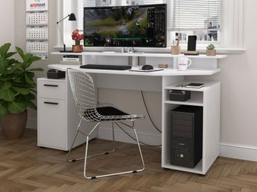 Компьютерный стол Скил — удобное место для работы или учебы, где продумана каждая деталь. Широкая столешница со скошенными краями позволяет держать под рукой всё необходимое, при этом легко дотягиваться до любых предметов. Для системного блока, документов и других нужных вещей предусмотрено место в надстройке и секциях по обеим сторонам.<br>